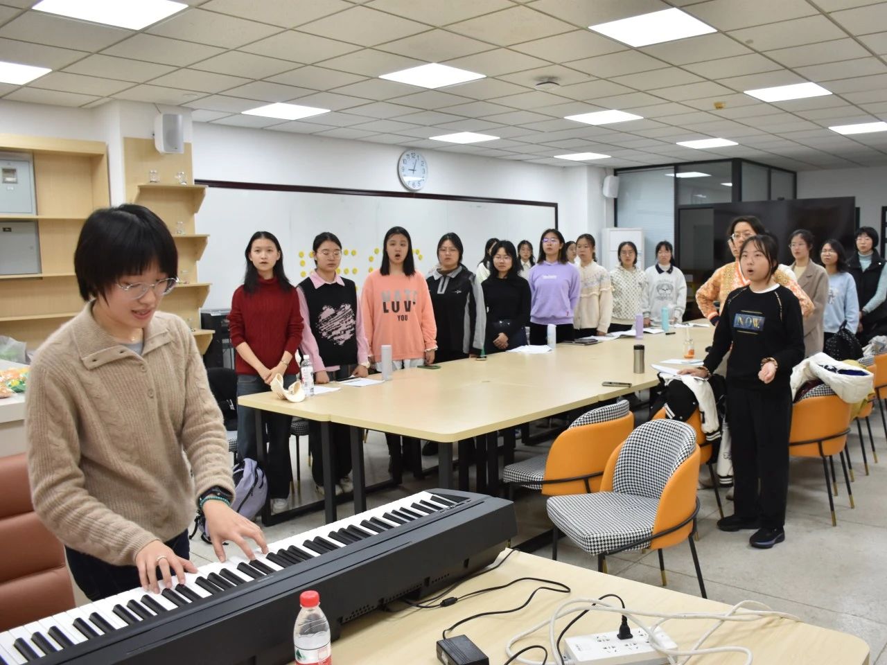 ,有这样一支近两百名师生组成的团队。他们如同紧密咬合的齿轮,在合唱、指挥、后勤、舞台布置和乐队伴奏等各个环节中发挥着至关重要的作用,淋漓尽致地展现出 “同心协力” 的伟大精神。