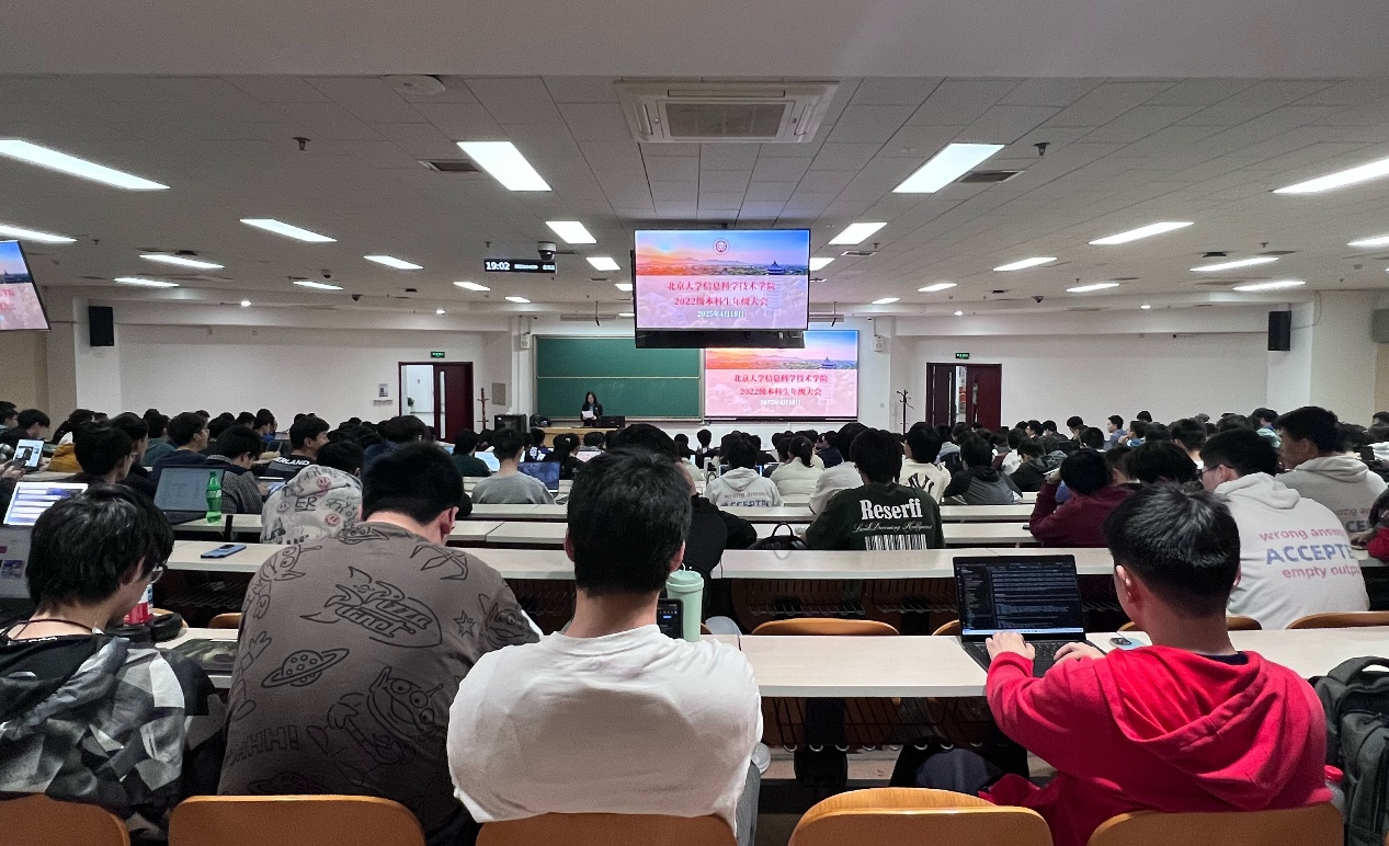 19时,2022级年级大会由学工办主任李子奇主持。教学办主任董晓晖回应了同学们关心的各类问题,就学业安排、保研和转段流程、毕业时间节点等事项做了细致介绍,建议同学们合理规划选课,避免必修课堆积至毕业年份。副院长陆俊林在讲话中肯定了同学们的学业表现与科研探索,建议大家在人工智能浪潮中找准技术锚点和自身定位,强化数理基础与跨学科能力。学工办主任李子奇介绍了学院学生工作整体情况及本学期开展的各类重点活动,并对各类安全注意事项做通报和提示。