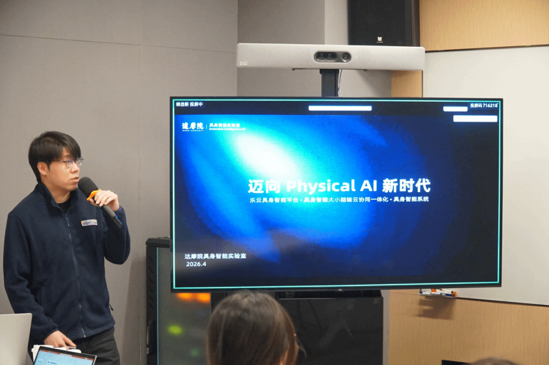 阿里巴巴达摩院具身智能实验室技术专家汪宇雷为学子带来专题分享。他立足人工智能产业格局,阐释了具身智能的核心内涵、行业趋势与现实挑战,指出其是推动通用人工智能落地的关键路径,并重点介绍了“乐云平台”—— 该平台以自研具身大脑为核心,打通全链路技术体系,打破传统智能技术局限,同时分享了模型研发、协议制定等阶段性进展,让学子对具身智能落地路径与产业前景有了清晰认知。